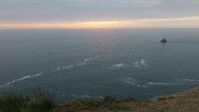 Abbiamo inseguito il sole fino alla fine del mondo e ci ripaga con un tramonto strano, fatto solo di riflessi tra le nuvole e l'acqua.